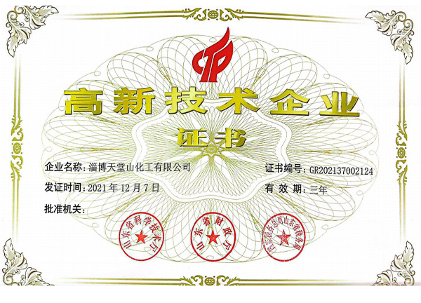 公司產(chǎn)品符合國家的產(chǎn)業(yè)政策,各種手續(xù)齊全,通過了環(huán)保、衛(wèi)生、消防、安全生產(chǎn)許可等各項驗收,企業(yè)化學品安全標準化三級達標驗收,并且通過了ISO9001質(zhì)量管理體系認證、ISO14001環(huán)境管理體系、ISO45001職業(yè)健康管理體系,先后被有關部門授予“市級重合同守信用企業(yè)”“消費者滿意單位”“質(zhì)量、計量管理先進單位”“勞動關系和諧企業(yè)”“企業(yè)免檢單位”“淄博市專精特新中小企業(yè)”“山東省化工明星單位”“山東化工發(fā)展?jié)摿?0強”“淄博市智能車間”“山東省創(chuàng)新型中小企業(yè)”“科技型中小企業(yè)”“高新技術企業(yè)”“山東省專精特新”等稱號。